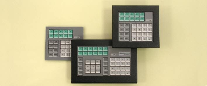 Clavier industriel de 34 ou 45 touches à effet tactile par coupelles de contact sur circuit imprimés.